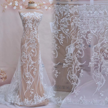 Tissu en dentelle de mariée encroûté perles 10 mètres en stock conception