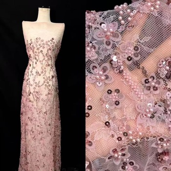 Tissu en dentelle à perles incrustées, collection 2021, pour femmes,
