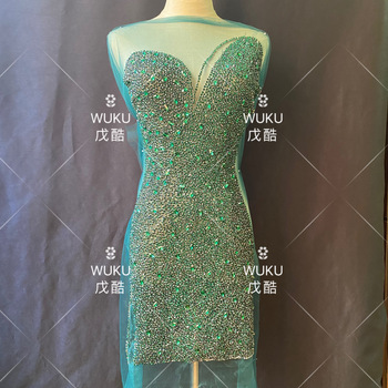 Pièce supérieure incrustée de cristal bling bling applique en vert