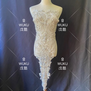 Wuku Hand Make Long Piece Decorative Lace Applique Encruted Beads